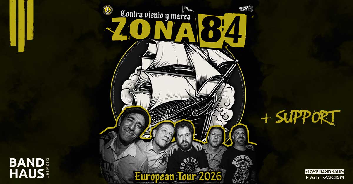 29apr20:00ZONA84 + SupportEuropean Tour 202620:00 Veranstalter: Bandcommunity Leipzig e.V.